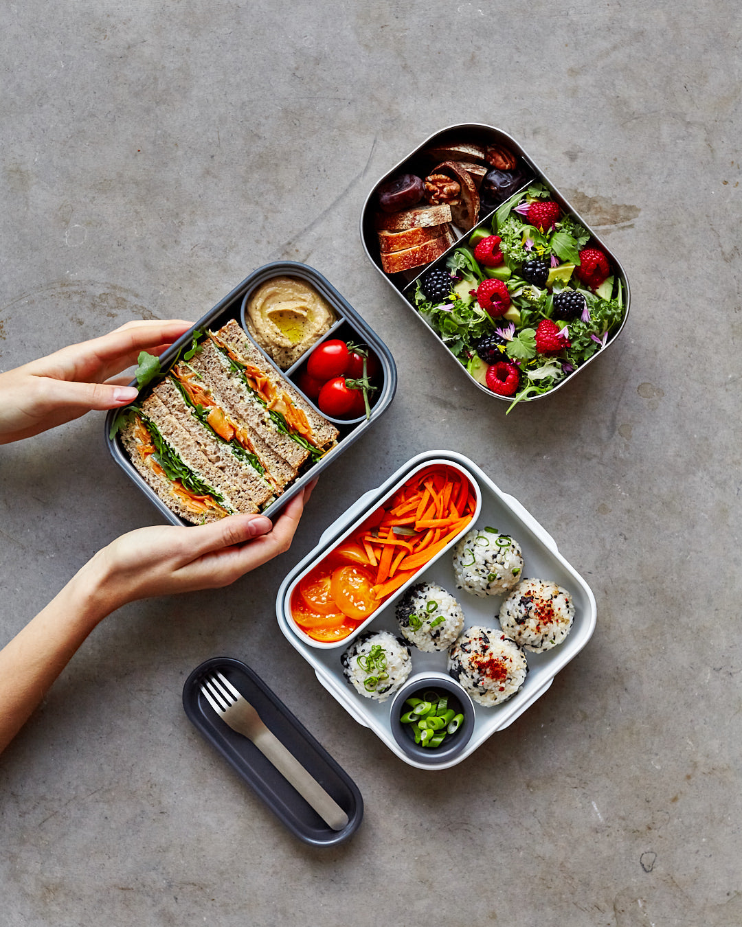 ENSEMBLE DE 3 BOÎTES ALIMENTAIRES EN ACIER INOXYDABLE (PETITES)